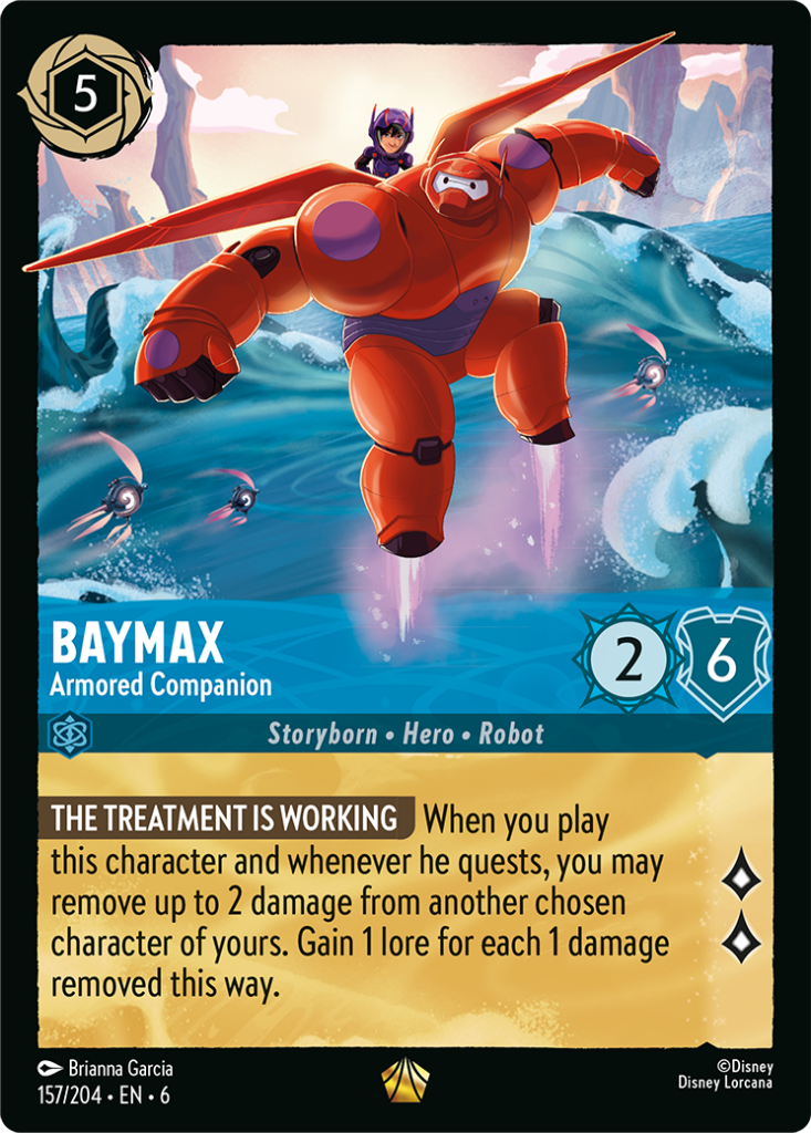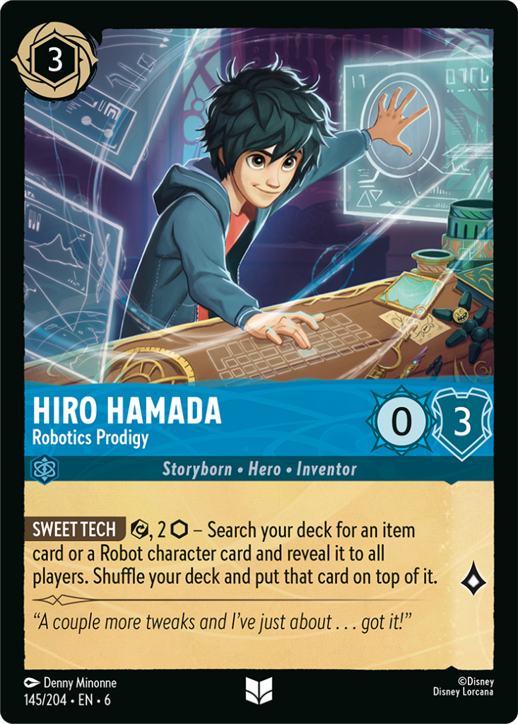 Come parte della continua espansione del mondo di Disney Lorcana, Azurite Sea aggiunge nuovi personaggi e nuove storie. I protagonisti di Big Hero 6 faranno il loro debutto nelle carte, con personaggi amati come Baymax, Hiro Hamada, Honey Lemon, Go Go Tomago, Wasabi e Fred. Anche il duo Cip & Ciop si unirà al gioco, accompagnati da altri personaggi del loro universo, come Gadget, Monterey Jack e Zipper. Questi nuovi personaggi si uniranno agli Illumineer nel loro viaggio attraverso l’azzurro mare, alla ricerca del modo per riparare il Grande Illuminary.